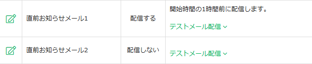 「直前お知らせメール1」と「直前お知らせメール2」はそれぞれ文面の変更も可能です。