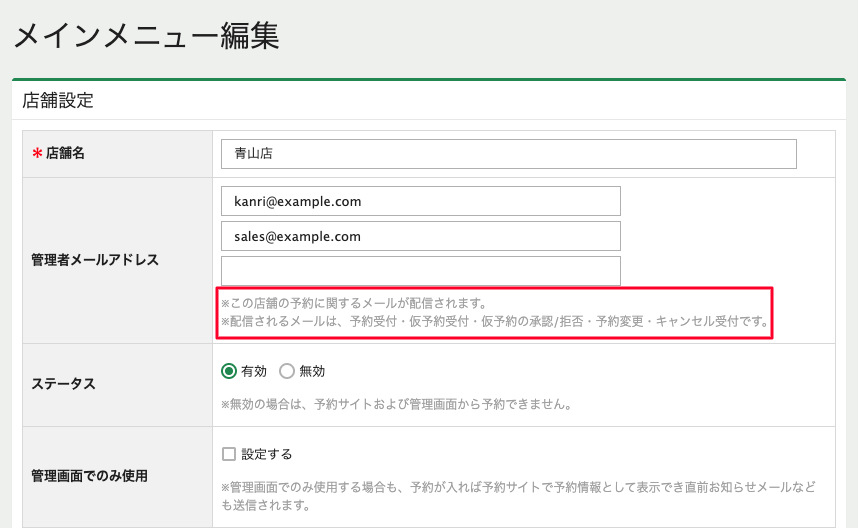 ※管理画面「メインメニュー編集」