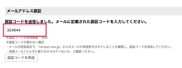 予約者情報を入力時、メール認証後に予約者情報の入力不備によりエラーが発生した場合、