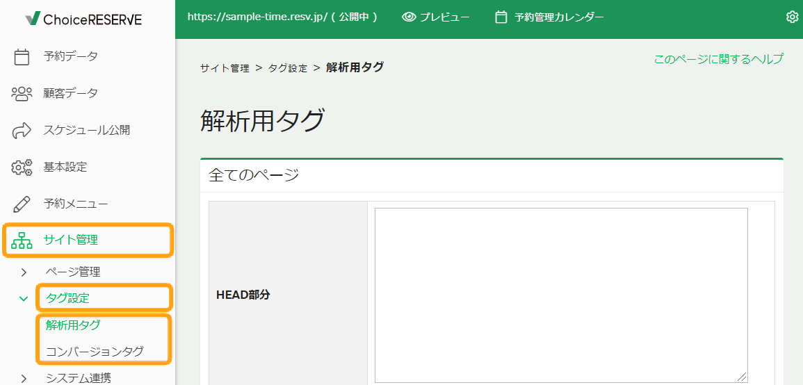 Googleアナリティクス等、アクセス解析ツールのトラッキングコードを予約サイトに埋め込むことができます。コンバージョンタグについて、詳しくはこちらをご覧ください。