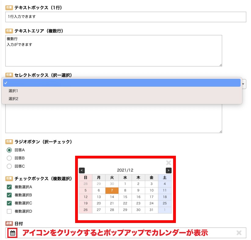 項目作成時にフォームタイプを選択します。フォームタイプを選択することで、回答の形式を制限することができます。作成後はフォームタイプの変更はできません。