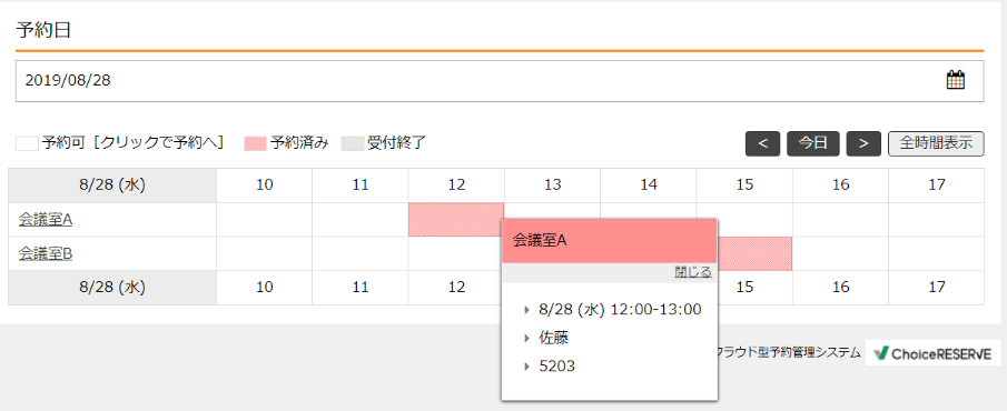 ・表示可能な予約情報には個人情報も含まれています。表示項目の設定にはご注意ください。社内向けシステムとして使われる場合は、「会員」登録を必須にする、固定IPアクセス制限機能(予約サイト)等の利用をお勧めします。