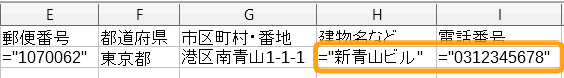 画面キャプチャーはサンプルです。設定によって出力される項目や列番号が異なる可能性があります。