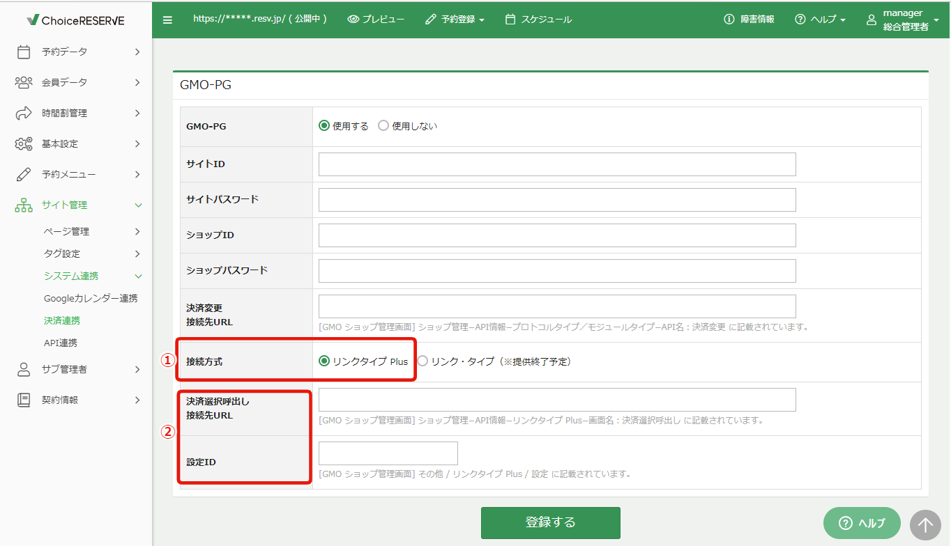 ChoiceRESERVEとGMOの両方の管理画面上で設定が必要になります。