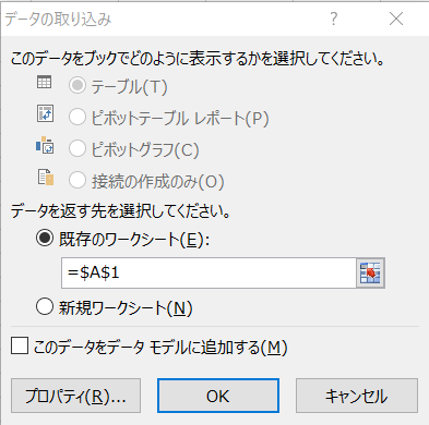 4.「完了」ボタンをクリックし、データをどこに取り込むか選択