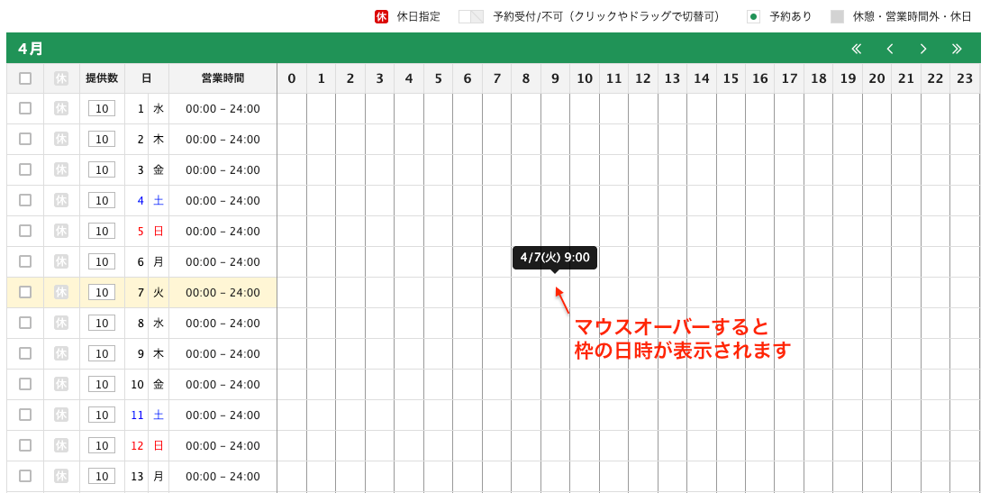 マウスオーバーしている箇所の日時がツールチップで表示されるようになりました。