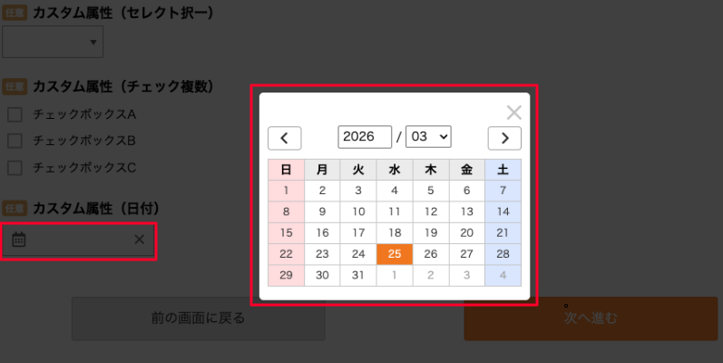 顧客データ項目・予約アンケートの日付入力項目において、カレンダー形式のUIで日付を選択できるようになりました。